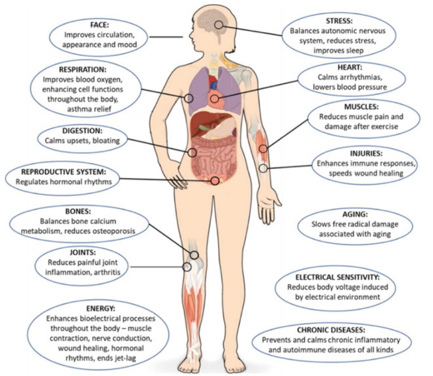 Several studies show that walking barefoot on natural surfaces or being connected to the earth is associated with: